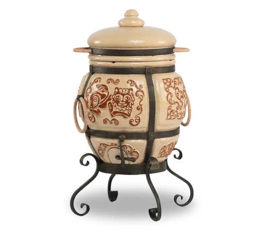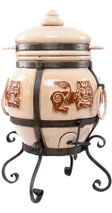 Тандыр покрыт глянцевой глазурью с орнаментом.